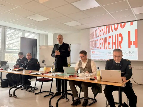 Gemeinsam mit zahlreichen Kameradinnen und Kameraden der Kreis- und Stadtfeuerwehrverbände wurde sich über aktuelle Themen und Entwicklungen im Feuerwehrwesen ausgetauscht.